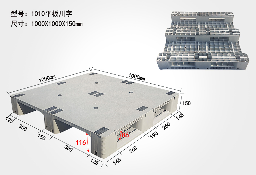 | 1010平板川字托盤 | 1000*1000*150 | 1T | 4T | 8 |